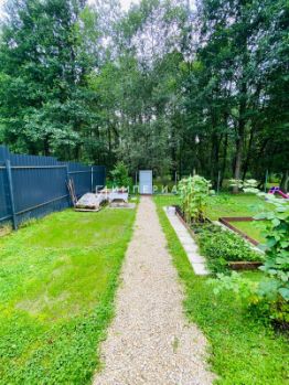 Участок: 6 соток, правильной формы, ухожен. Огорожен забором со всех сторон. Сделана дренажная система для отвода воды. На участке газонная трава, садовые деревья и кустарники. Отмостка из щебня, дорожки и стоянка под автомобиль - бетонные. Участок находится возле леса и озера.