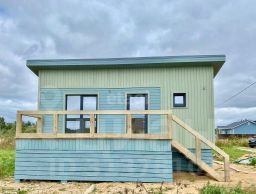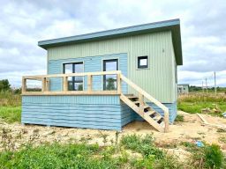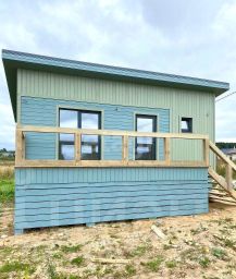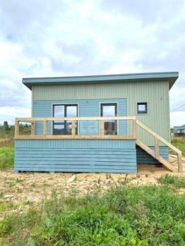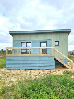 • Конструктив дома: построен по каркасной технологии. Утепление 200 мм пол, 200 мм потолок и 150 мм стены (предназначен для круглогодичного проживания). Покраска наружных и внутренних элементов произведена в закрытом помещении, с прокраской всех стыков и швов. Фундамент выполнен на бетонных сваях, длинной 3 м (15*15 см, в землю на 2 м). Внутри и снаружи имитация бруса, полы шпунтованная доска толщиной 38 мм, в три слоя покрыта половым лаком фирмы Теккурила. Дом приподнят от земли примерно на 1.1 м для более простого мониторинга будущих инженерных подводок + дополнительное пространство. Цоколь обшит, есть отдельная дверца для входа, что позволяет складировать инструмент, садовую технику и пр.