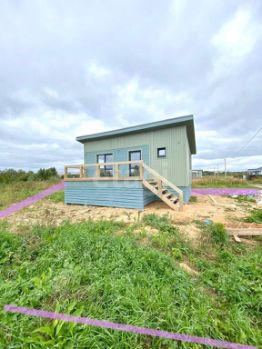 • Планировка дома: зал/кухня объединены в одно помещение (французское окно в зале с выходом на веранду) + 1 спальная. С/у и ванна совмещены, прихожая.