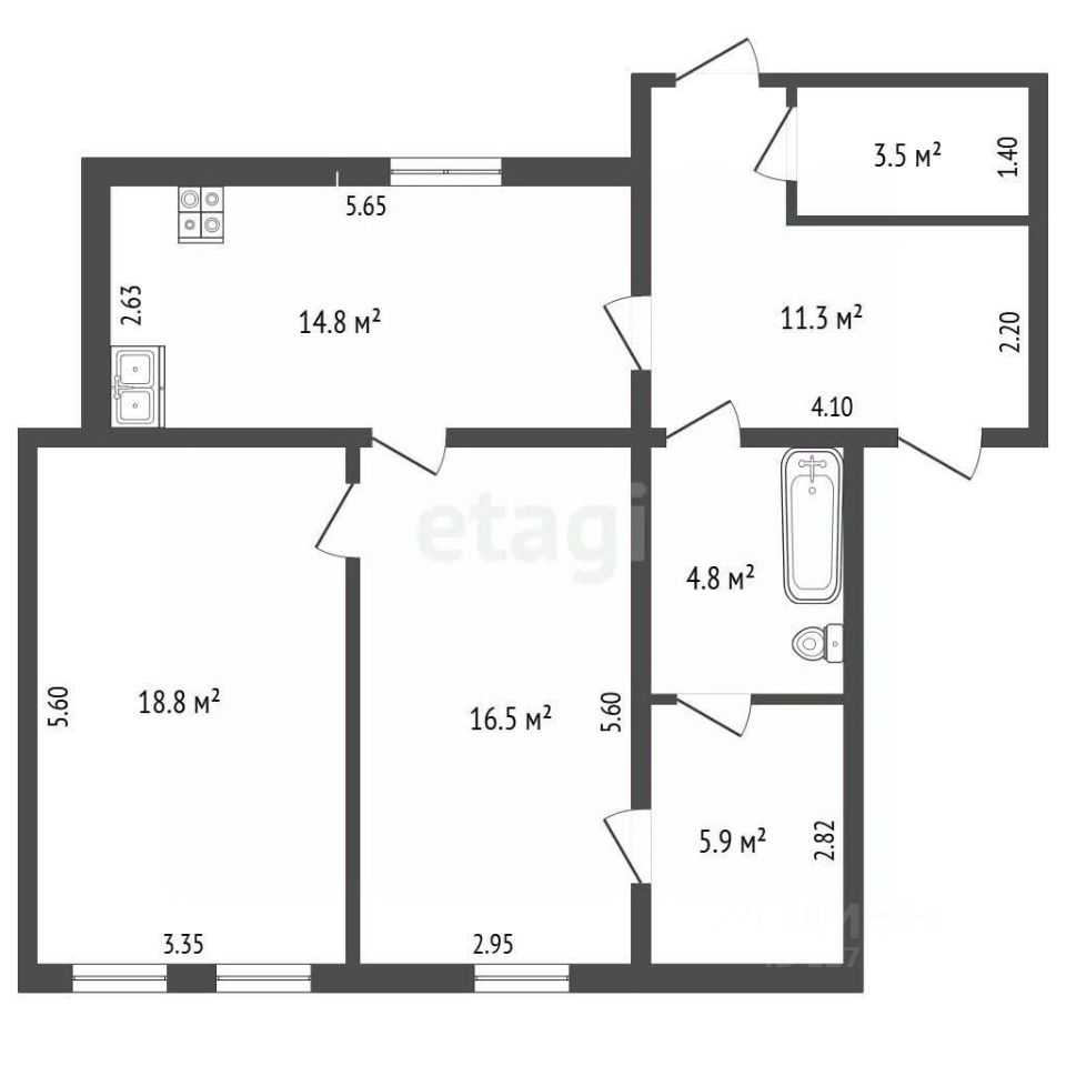 - общая площадь 75,6кв.м.