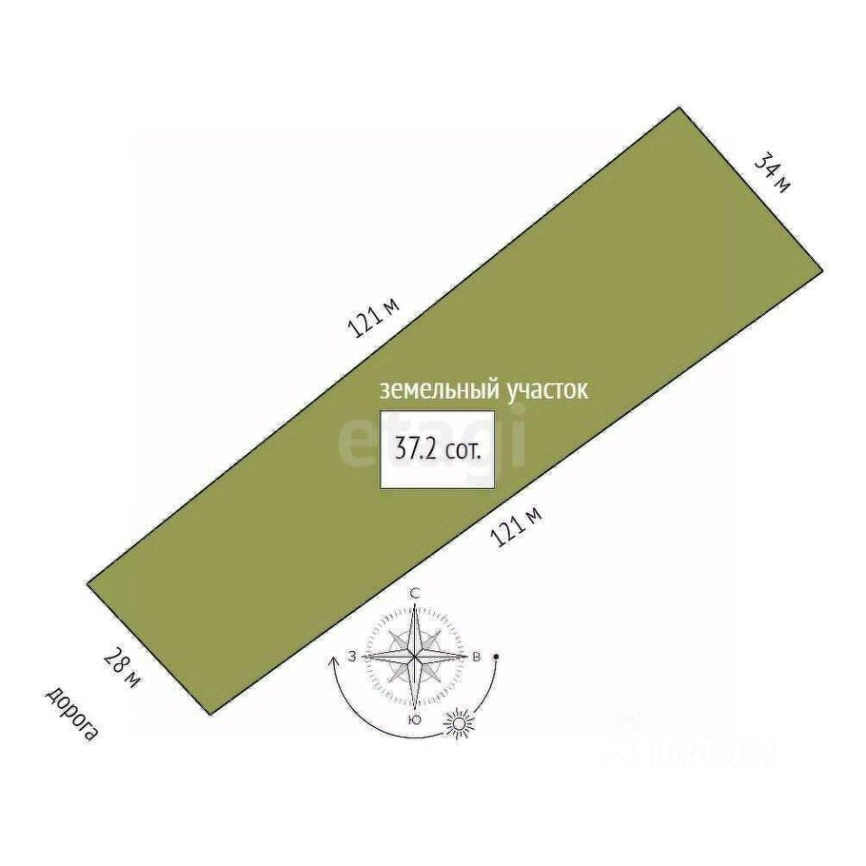Вашему вниманию предлагается участок прямоугольной формы, 37 соток, участок обнесен забором со всех сторон.