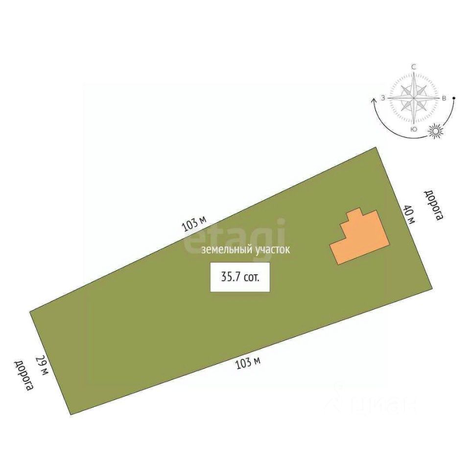 Большой участок общей площадью в 35 соток земли.