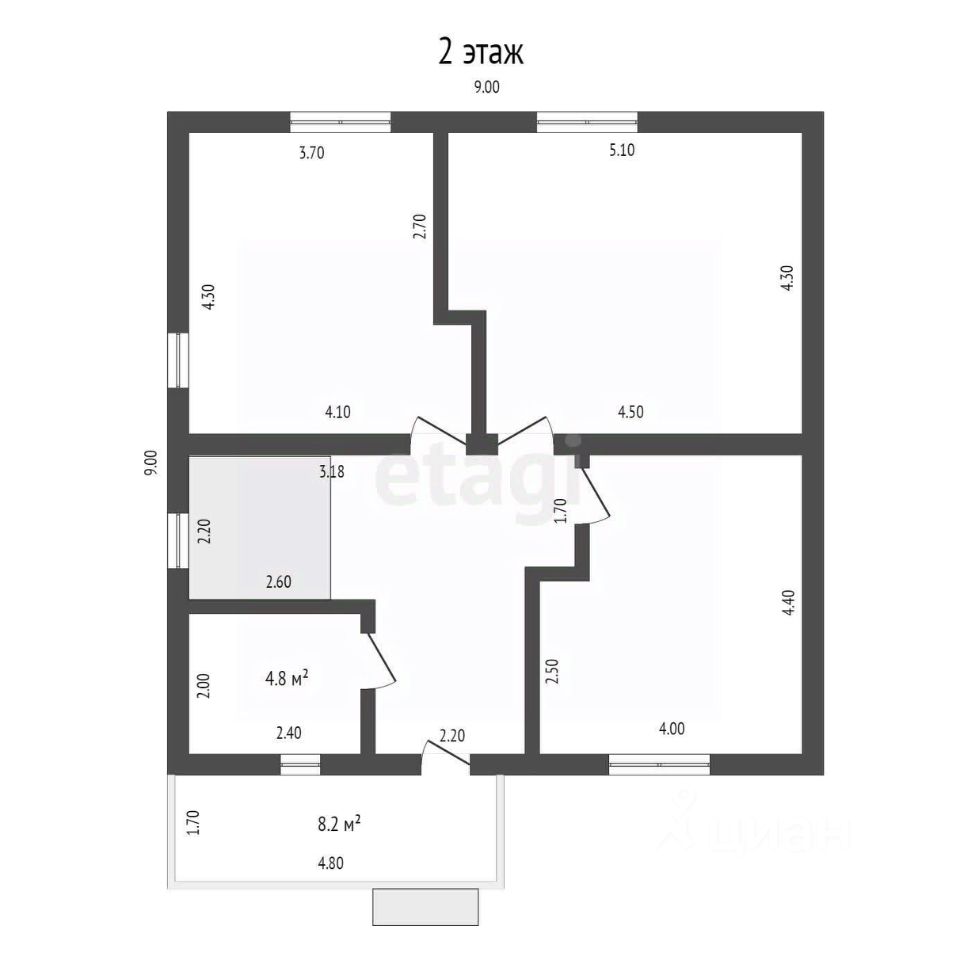 - На втором этаже расположены 3 спальни, санузел и лоджия. В доме также имеются два санузла.