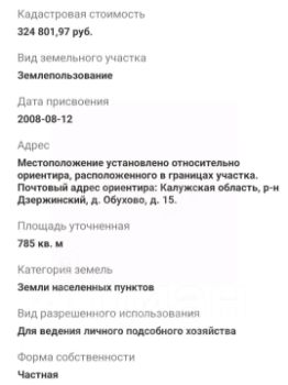 В продаже 7,85 соток земли в дер. Обухово, Дзержинского района Калужской области.