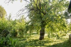 Участок ровный, усажен фруктами, ягодами и цветами.