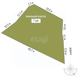 Участок 7 соток, все коммуникации по границе. Есть подъезд.