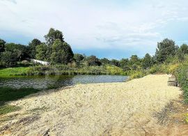 Рядом пруд для рыбалки и купания с пляжем
