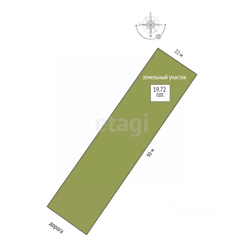 Участок прямоугольной формы, размером 22*80 м.