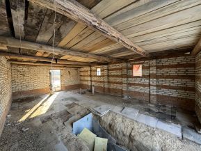 Участок прямоугольной правильной формы, не сырой, находится на возвышенности с небольшим естественным уклоном для отхода воды. Огорожен со всех сторон забором. На участке расположен кирпичный жилой дом старого фонда постройки, гараж, сарайчики для животины. К дому подведен магистральный газ и электричество 3 фазы 15кВт.