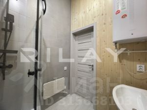 Санузел совмещённый, отделка деревом и плиткой, установлена душевая кабина.