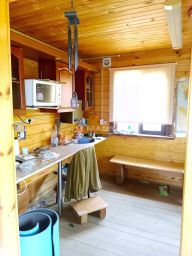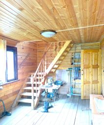 Домик из Бруса 100 мм. на свайном высоком фундаменте, крыша покрыта мягкой кровлей "ондулин", окна деревянные стеклопакеты, свет подключен, водопровод из колодца, по границе СНТ проведен газ.