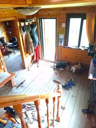 В доме на первом этаже большая гостиная, помещение под сан. узел, кухня 10.3 кв.м.;