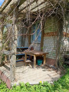 Территория зеленая ,виноград обвивает все строения,на территории участка стоят уличный туалет,душ,и каркасы трех теплиц. Много плодовых деревьев,ягодных кустовых насаждений, многолетних цветов,в центре участка стоит 12 летний кедр.