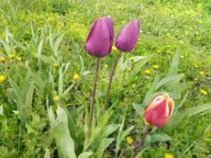 Ровный, ухоженный, с молодыми плодовыми деревьями, цветами и кустарниками.