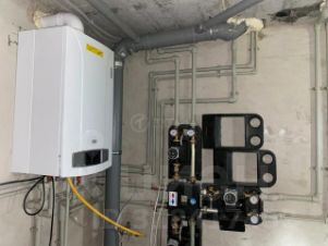 * Смонтирована система отопления, установлены стальные радиаторы Kermi. Котёл 2-х контурный отопительный, бойлер на 160л Baxi.