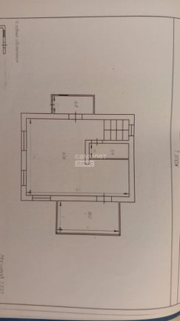 Первый этаж: Хозяйственная пристройка (раздевалка), санузел, лестница, зал 46м², кухня 13,5м² с отдельным выходом на веранду 19м².