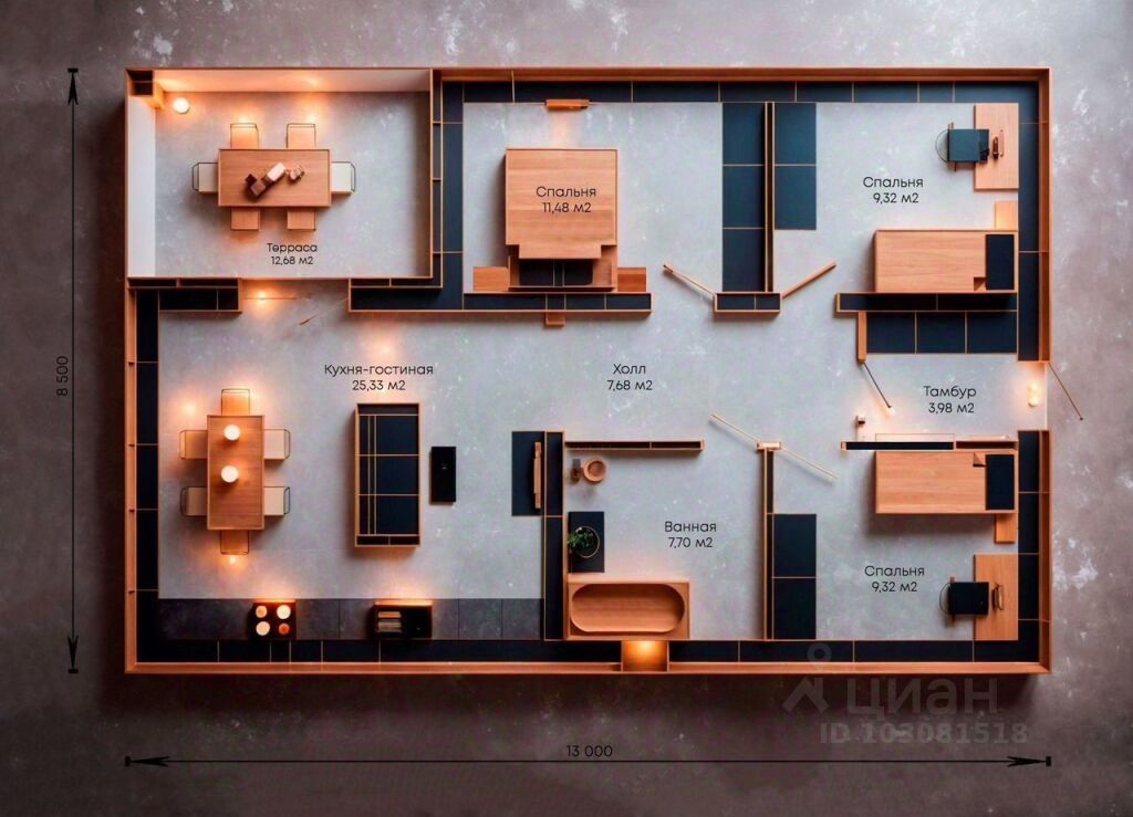 - 2 уютные детские спальни по 9,32 м² — личное пространство для самых важных маленьких жителей.