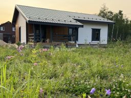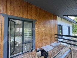 Облицовка: имитация бруса. Кровля: металлочерепица. Установлена водосточная система. Окна - двухкамерные стеклопакеты с поворотнооткидным механизмом. Внутренняя отделка - имитация бруса частично, кухня-гостиная обои, полы керамогранит, потолки натяжные.