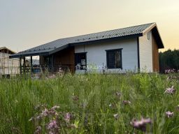 Планировка дома: Прихожая, котельная, холл, кухня-гостиная с выходом на террасу, три спальные комнаты, один сан. узел (установлена будет ванна).