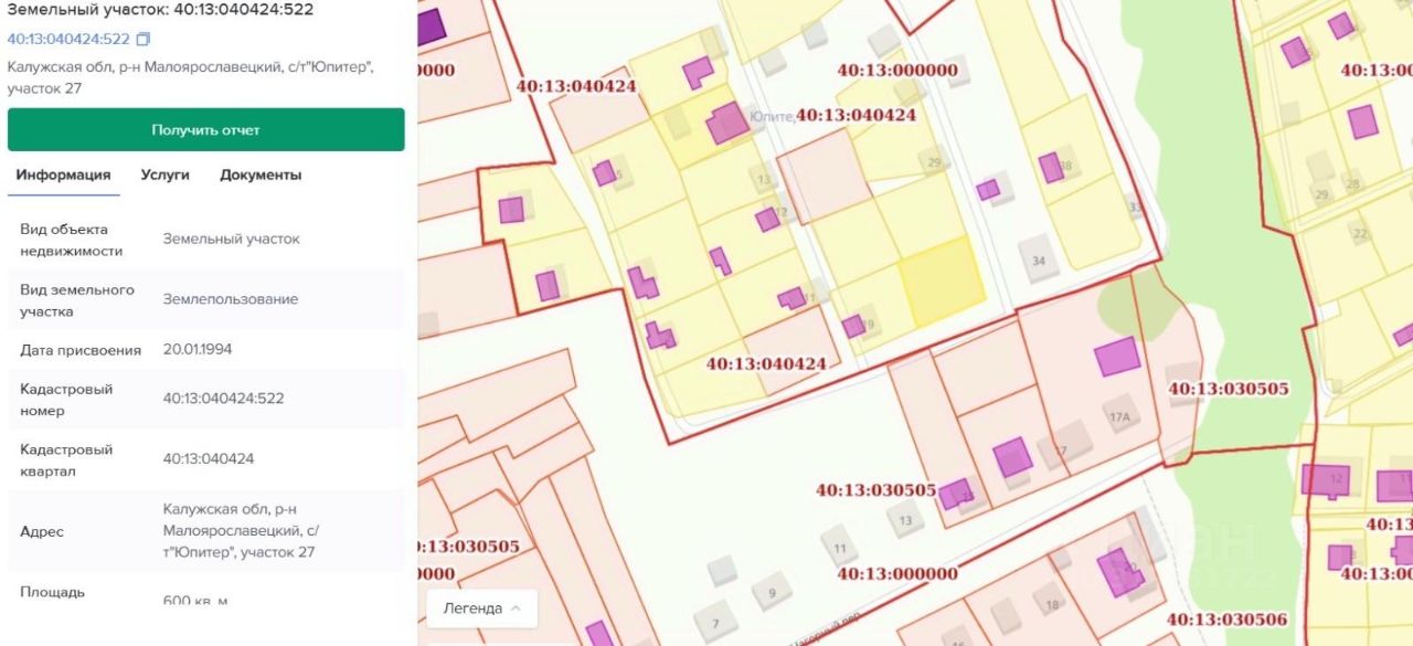 Кадастровый номер участка 40:13:040424:*** указал продавец