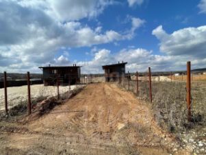 * По периметру участка поставлены столбы под забор.