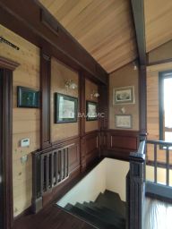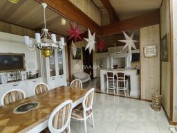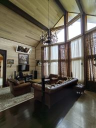 Дом построен в 2013 году из КАНАДСКОГО КЕДРА ( привезли из Америки). Фундамент - монолитная плита. Его высокие потолки (3,5 м) создают ощущение простора и свободы. Жилая площадь составляет 274,1 кв. м, а кухня — 40,7 кв. м, что делает это место идеальным для семейных торжеств и дружеских встреч. Семь комнат и шесть совмещённых санузлов обеспечивают комфортное размещение для большой семьи или гостей. Три мастер-спальни со своими ванными комнатами. Просторная гостиная с камином. Многофункциональная Бильярдная комната, где могут проводить время не только любители бильярда , но и где можно организовать встречу с друзьями или приятно провести вечер с семьей. На первом этаже расположен уютный кабинет, с библиотекой и своим санузлом. Изюминкой дома является бассейн и винная комната с системой вентиляции и увлажнения.