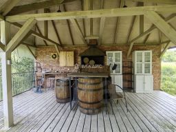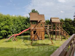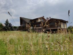 На участке предусмотрены все удобства для отдыха как взрослых так и детей. Спортивная площадка, детская площадка ,летняя кухня с панорамным видом, не большой пруд для купания и рыбалки и многое другое. Безопасность обеспечивается системой охраны.