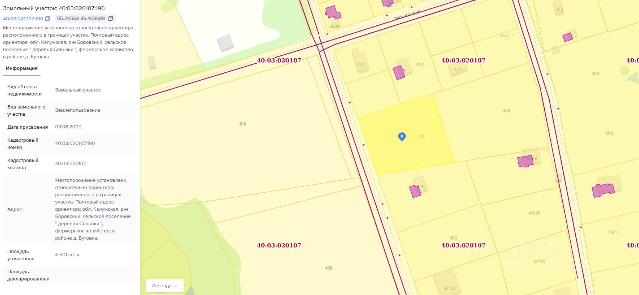 • Кадастровый номер: 40:03:020107:190.