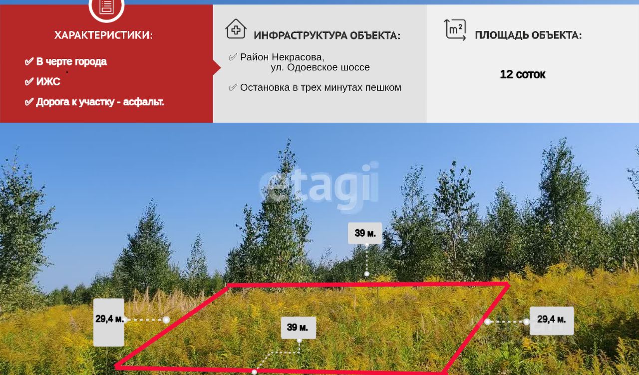 В ЧЕРТЕ ГОРОДА КАЛУГА в продаже участок ИЖС 12 СОТОК ( 40*30 м ) район ул.Одоевское шоссе, д.Некрасово Правый берег Калуги .