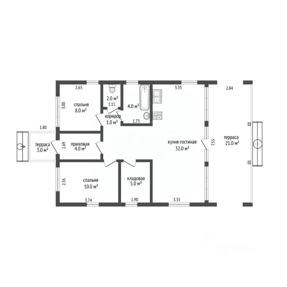 - пластиковые окна и терраса;
