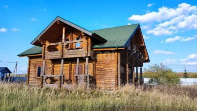 Дом из сибирской сосны, на крыше мягкая кровля с дополнительным ковром и толстой фанерой. Утеплитель 200 мм на крыше, фанера толщиной 12 мм на кровле.