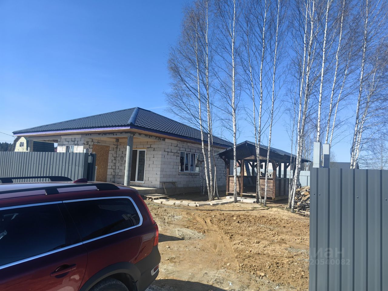 Участок имеет форму прямоугольника и огорожен профессиональным забором с откатными воротами. На участке также имеется шикарная беседка.