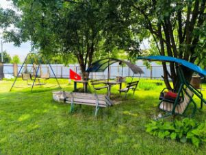 Участок 15 соток правильной формы включает бытовку, сарай, хозпостройки, мангальную и детскую зоны.