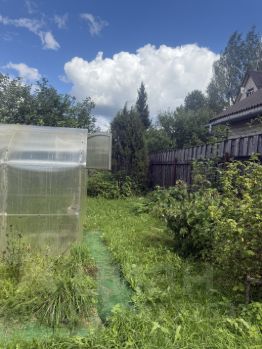 Весь участок по периметру огорожен, с одной стороны стенай из туй более 3 мера высотой.