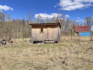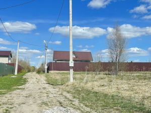 Участок пустой, ровный, из коммуникаций проложены газ и электричество, выкопан колодец. На территории установена бытовка. Весь периметр участка огорожен рабицей.