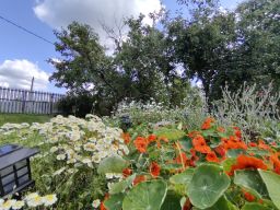 Сад : яблони, вишни, смородина красная и черная, сливы белая и синяя, жимолость, черника , каштан, клубника. Посажаны кабачки, тыквы, виноград, многолетние цветы.