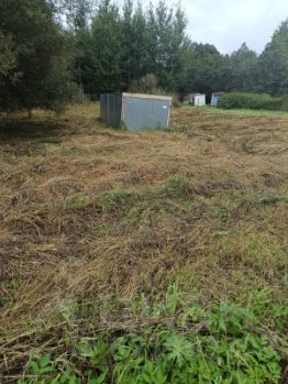 На участке стоит гараж ракушка.