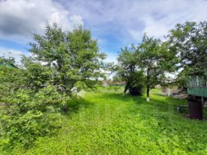Участок почти квадратный, ухоженный, с садовыми посадками, плодовыми деревьями и цветами.