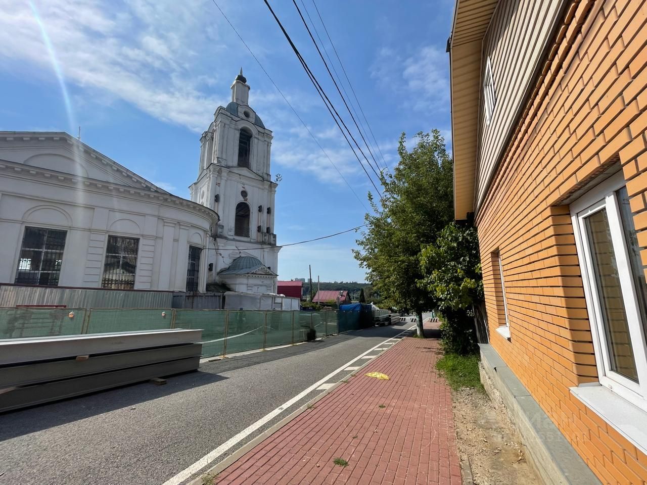 С участка видна часть Монумента к 600-летию Калуги, представляющего собой 50-метровую стелу, на вершине которой расположена голова Юрия Гагарина в шлеме, а у основания — огромный земной шар, а прям напротив дома Преображенская церковь.