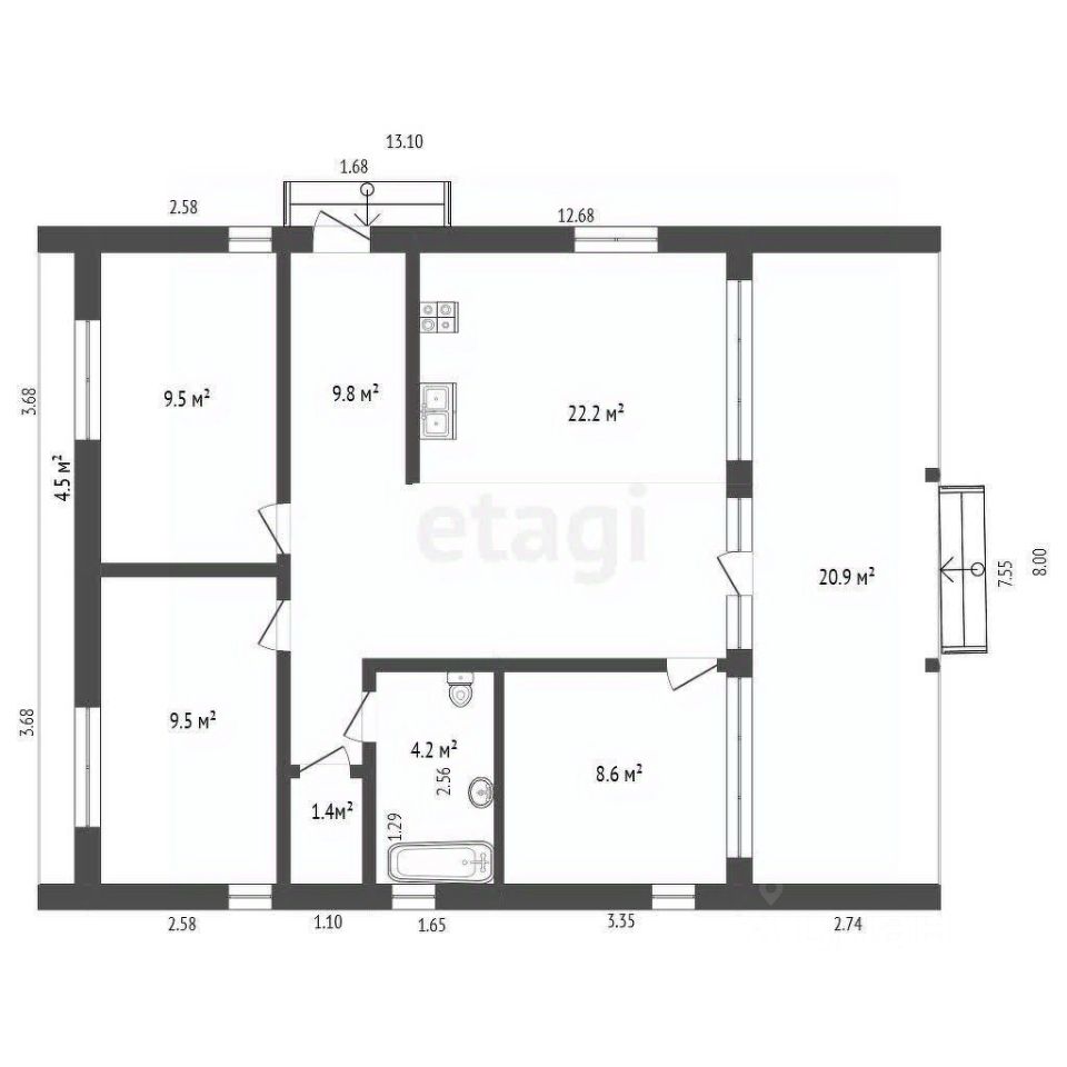 Общая площадь: 90 квадратных метров, просторно и удобно для всей семьи.