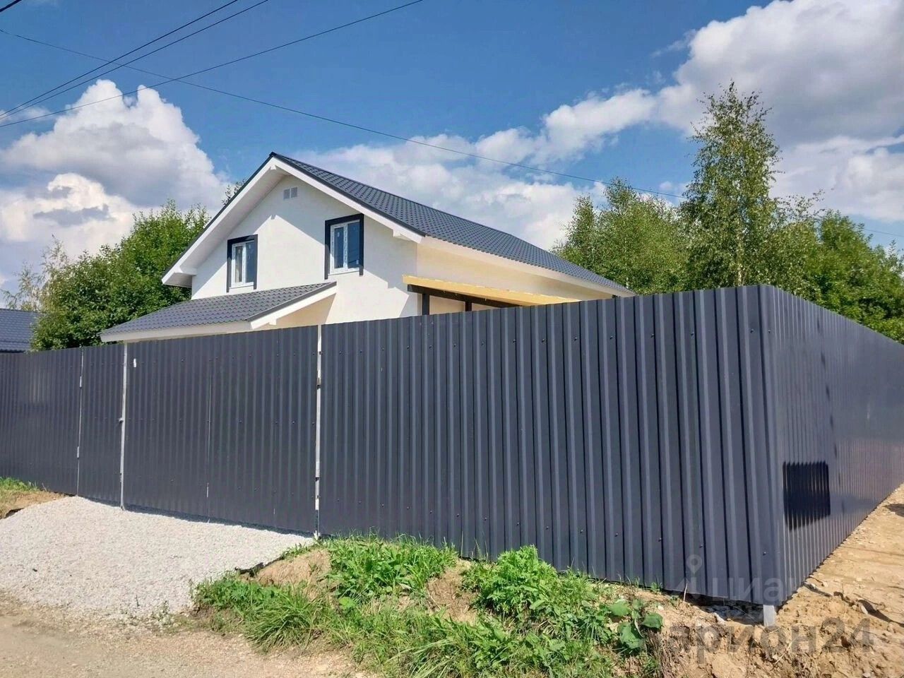 Оборудовано место для парковки на две машины. Тропинки и отмостка отсыпаны щебнем.
