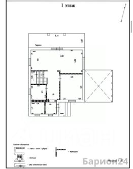 1 этаж: крыльцо-тамбур, прихожая, котельная, столовая - кухонная зона - гостиная, сан.узел, комната.