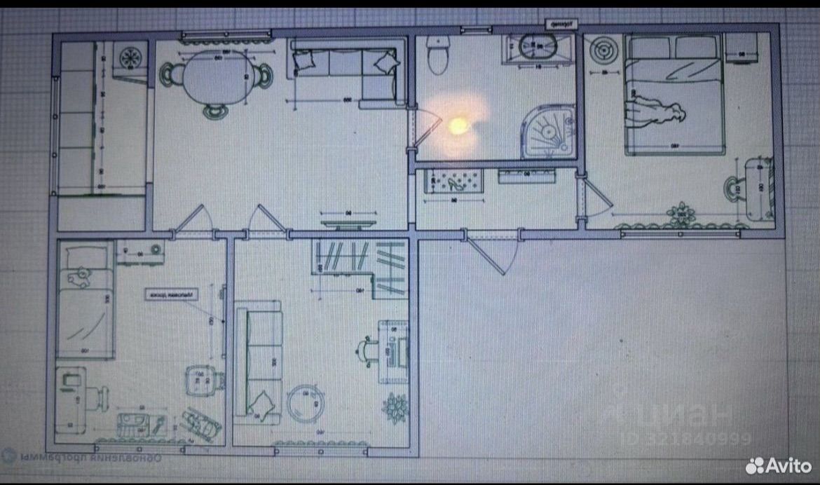 Планировка: холл; гоcтиная c выдeлeннoй куxонной зонoй c окном; три раздeльные спальни с панорaмными окнами, бoльшой coвмeщeнный cанузел, подиум