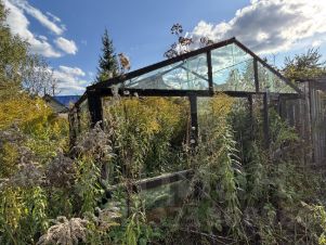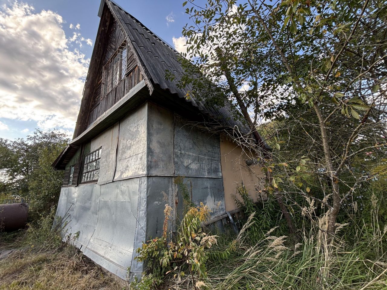На участке имеется хозблок, теплица сваренная из уголка. Н