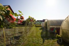 Земля обработана: грядки, сад из плодовых деревьев. Установлены две теплицы из поликарбоната.