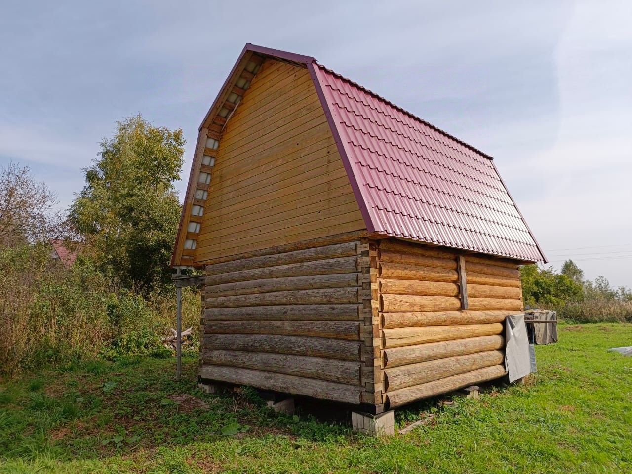 На участке установлен Псковский сруб 5*4 с мансардой (перед сборкой перезимовал), лаги и доски на черновой пол внутри дома. В доме ремонтные работы не проводились ,чтобы дать время устояться срубу. За сезон был обработан 2 раза олифой в 2 слоя, крыша металлочерепица Grand Line.