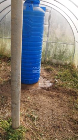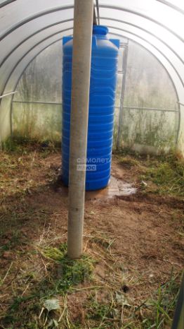 5. Теплица арочная покрытая сотовым поликарбонатом. Установлены центральные столбы. Внутри этой теплицы установлен пластиковый накопительный бак для полива 800 литров. Эта теплица установлена в самой высокой точке участка.