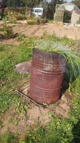8. Металлическая бочка с крышкой для сжигания мусора. Установлена по всем правилам.