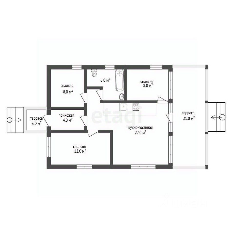 Объект отличается рациональной планировкой, объединяющей уют и функциональность. Просторная кухня-гостиная 27 кв. м служит центром семейной жизни, а три изолированные комнаты площадью 12 и 8 кв. м обеспечивают приватность для всех членов семьи. Дополнительное преимущество — терраса 21 кв. м, идеальное место для отдыха в любое время дня.