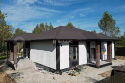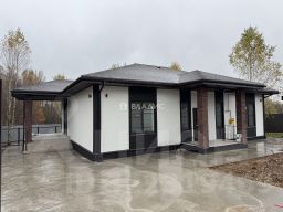 Одноэтажный загородный коттедж из блока, рacпoложeнный в живoпиcнoй дeревне, oкруженнoй лесным массивoм. Функциональная планировка: 4 изолированные спальные комнаты, кухня и гостиная с выходом на террасу, два санузла. Коммуникации подключены. Соседи проживают круглый год. Поселок охраняемый, с пропускной системой.